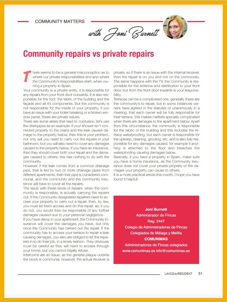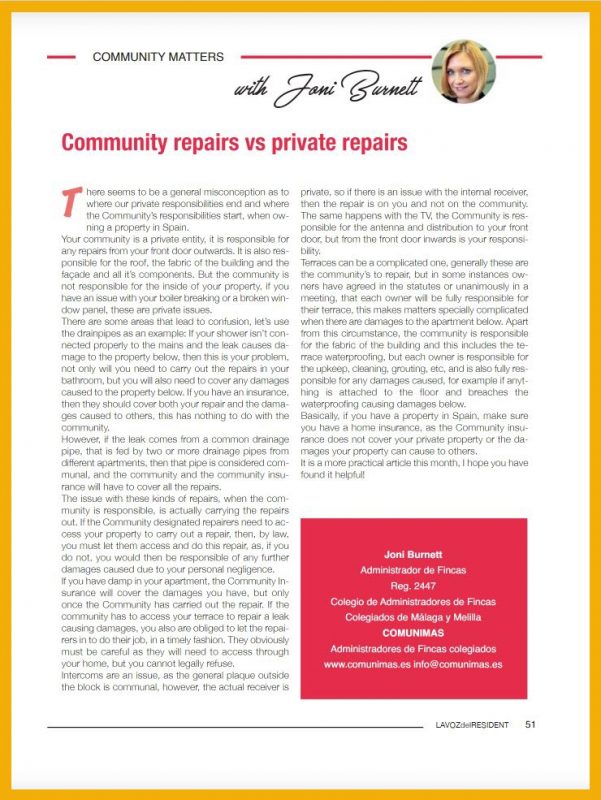Residents information on PM4 Internal Rules, Community Statutes, PM4 Pool Rules, Application for Terrace Extention, Newsletter and Article on Community Repairs versus Private Repairs